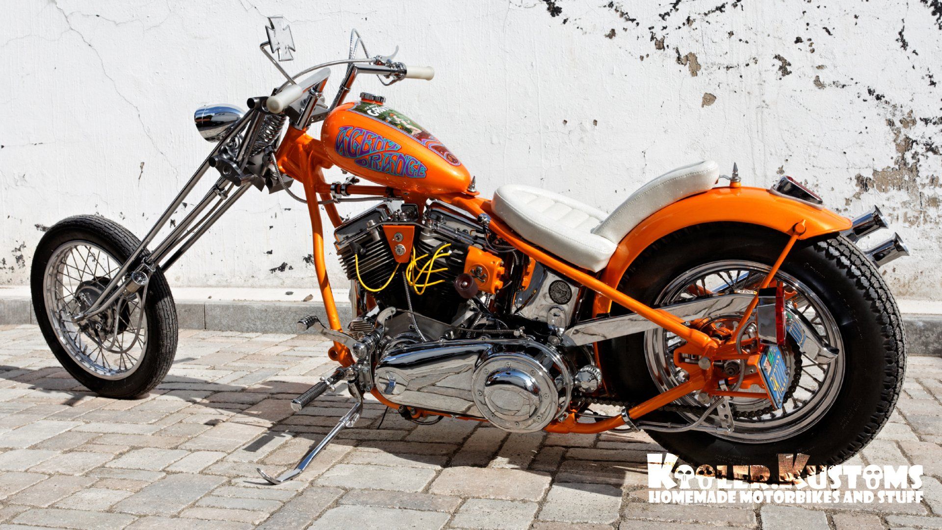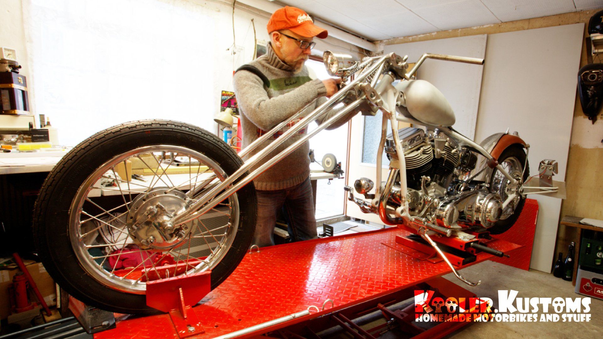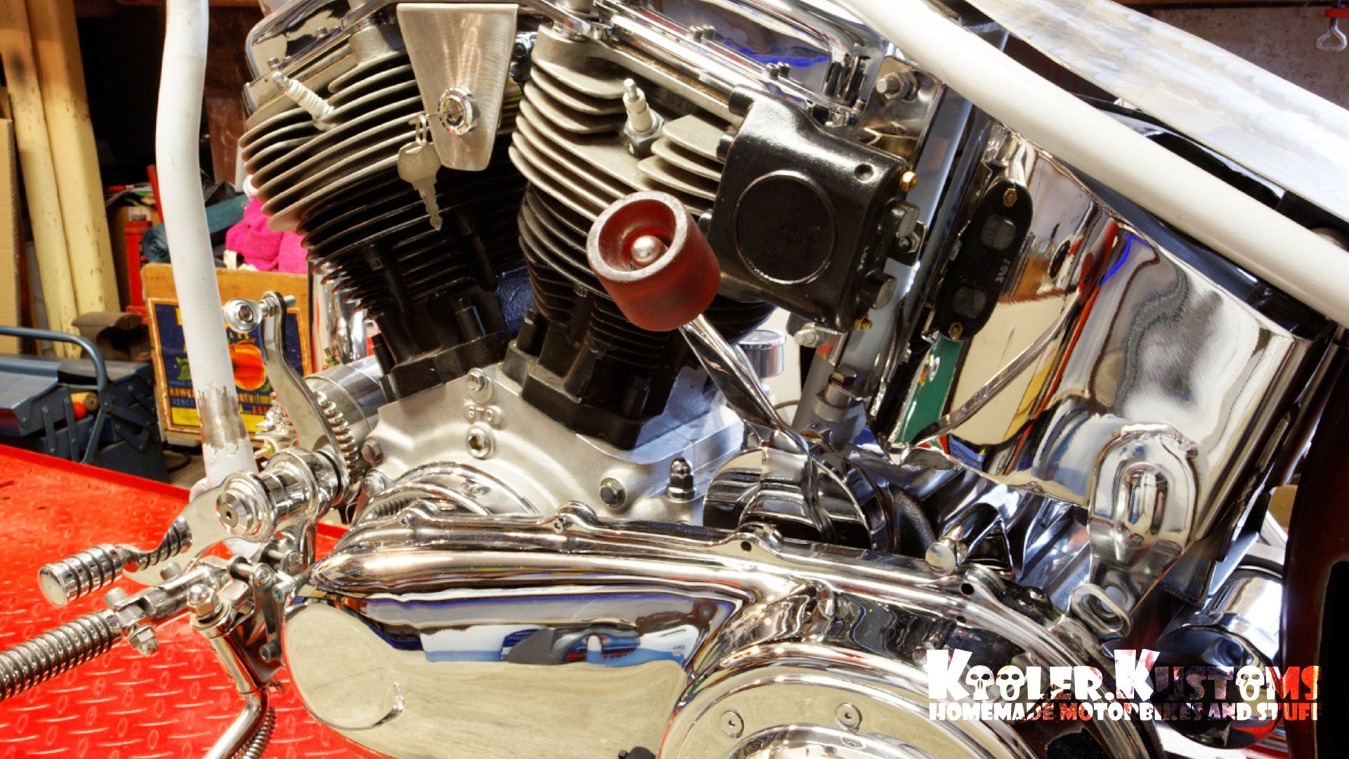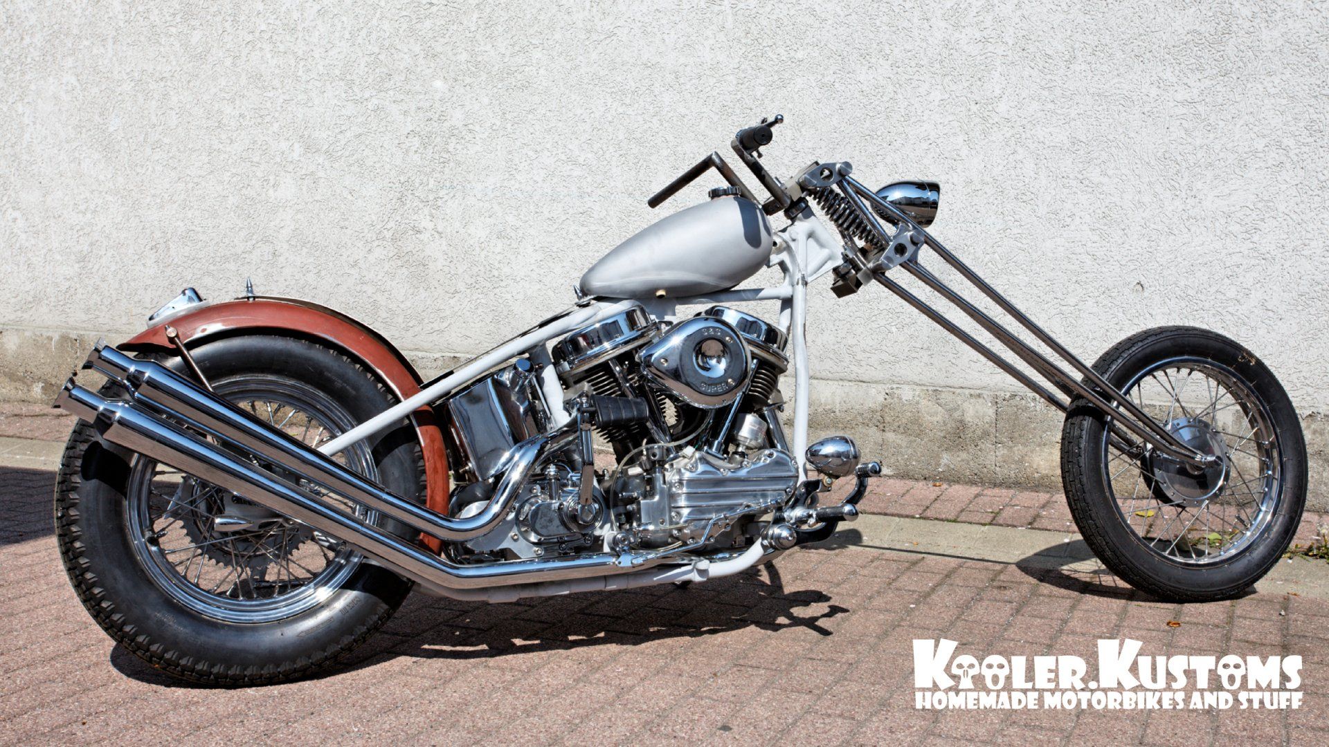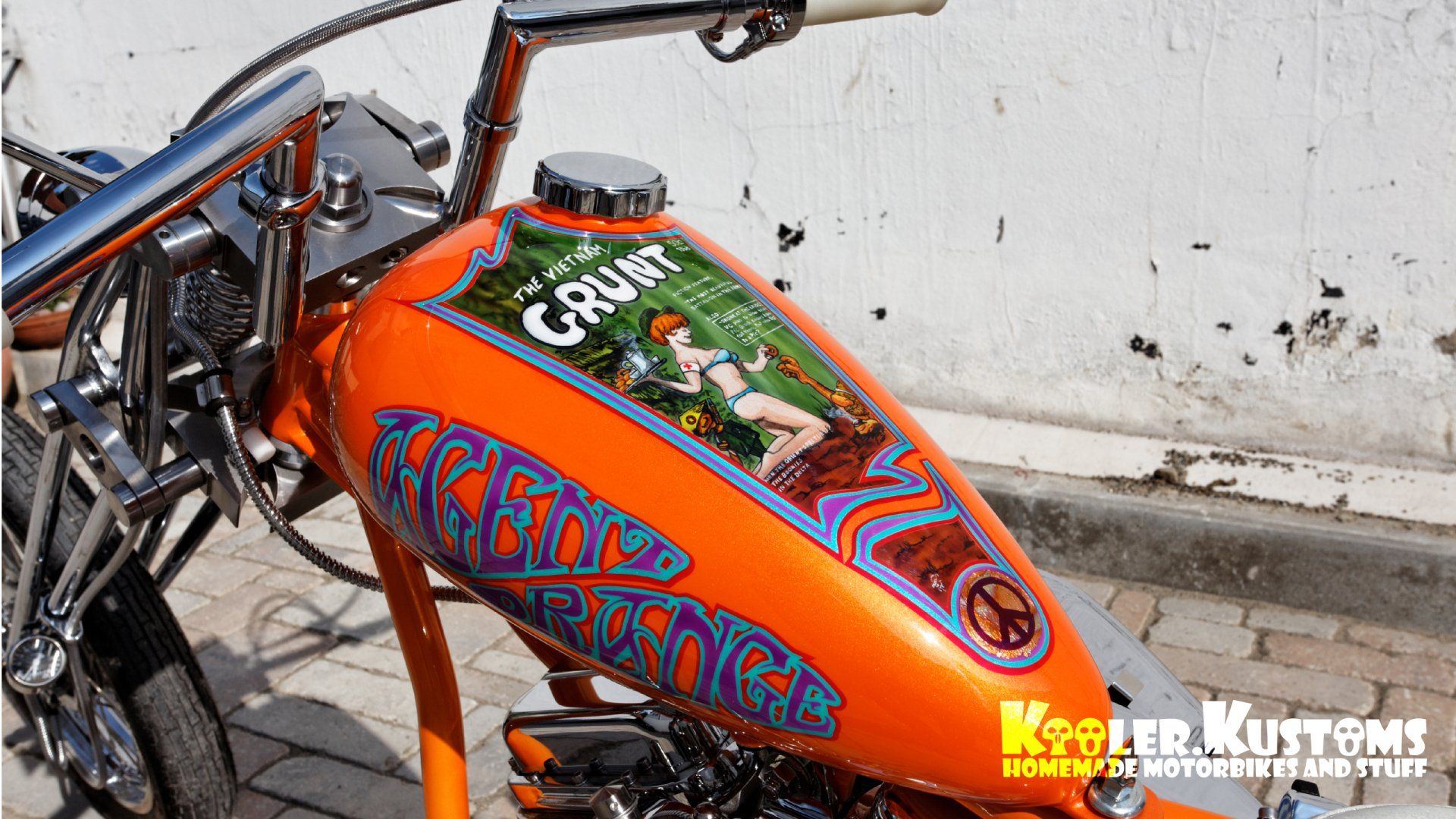 Basis: Eine für nen Paintjob eingetauschte, ranzige CCW –Girdergabel aus den USA. Die Gabel ist neu verchromt und mit CNC-Teilen und drahterodierten Brücken verfeinert.