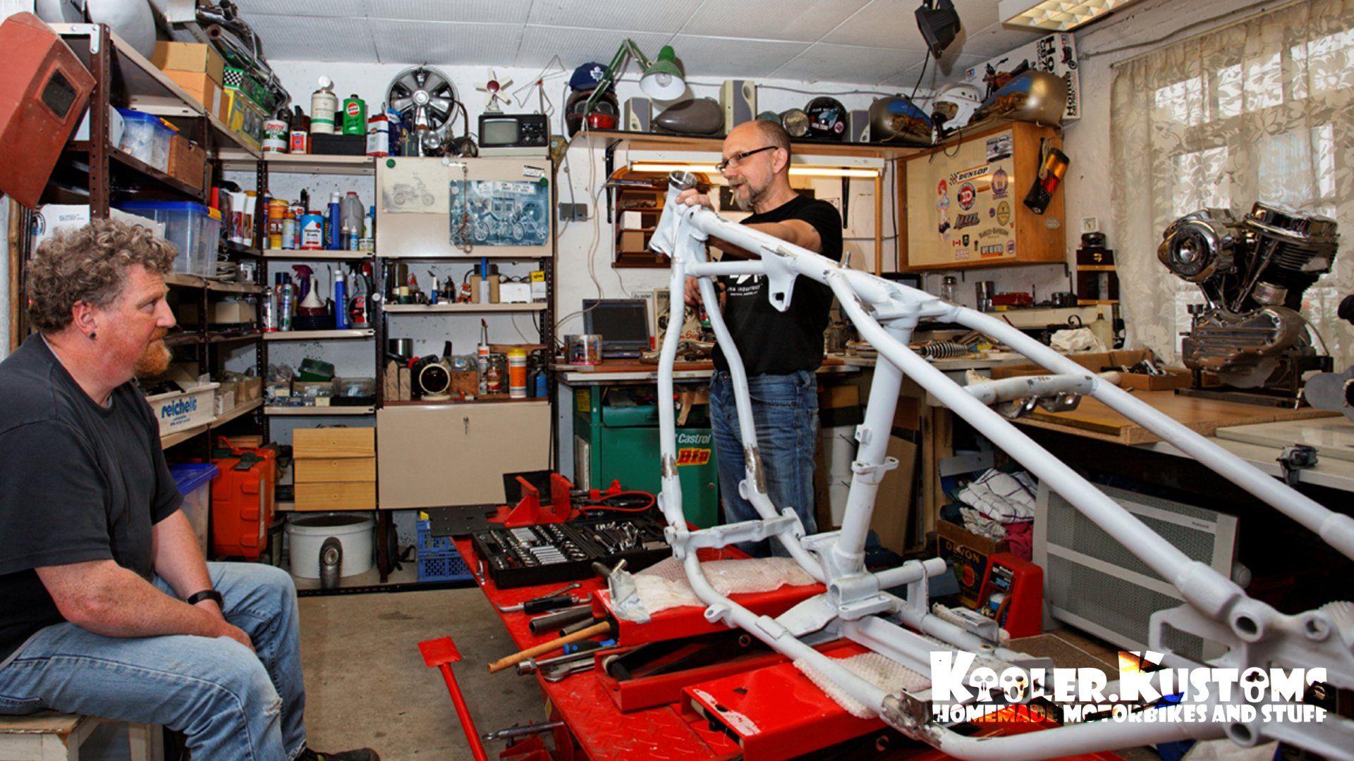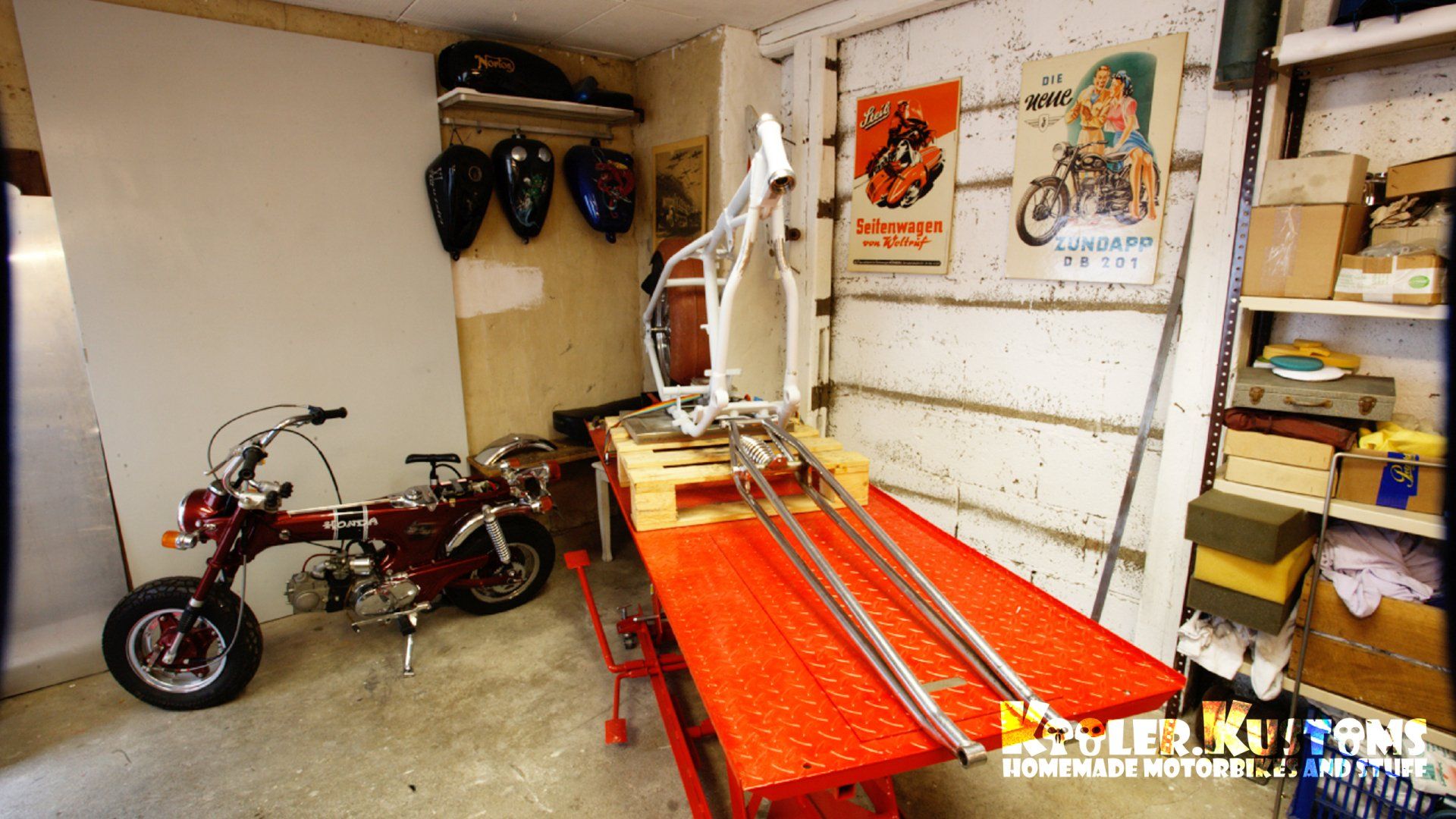 Dazu fix nen 1948 Wishbone Rahmen besorgt. Brutal geraked, passt perfekt.